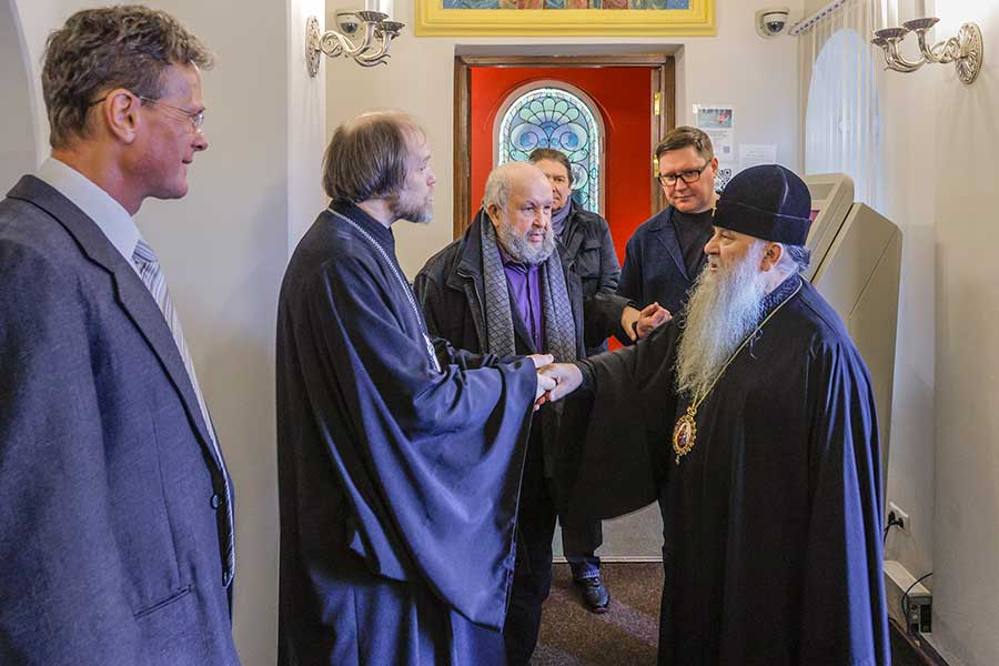 14 ноября, на следующий день после торжественного открытия, фотовыставку священника Игоря Палкина «Потомки и наследники святых» посетил митрополит Санкт-Петербургский и Ладожский Варсонофий. Высокого гостя сопровождали директор Государственного музея «Исаакиевский собор» Юрий Витальевич Мудров вместе с автором фоторабот, заведующим фотослужбой Патриарха Московского и всея Руси иереем Игорем Палкиным. Владыка Варсонофий, чье благословение предварило открытие выставки, внимательно ознакомился с работами, каждая из которых представляет глубокий духовный образ и является частью истории церкви.