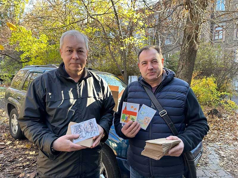 Новый комплект тематических открыток с детскими рисунками и трогательными посланиями военнослужащим был создан по инициативе Государственного музея «Исаакиевский собор» при поддержке Донецкого республиканского художественного музея и активном участии юных петербуржцев. Открытки передали заместителю командира подразделения Евгению Вадимовичу Ивлеву, который лично доставит послания от детей бойцам на запорожском направлении. В своем обращении Евгений Вадимович отметил особую ценность этой поддержки: «Трудно представить, с какой теплотой бойцы хранят эти открытки. Ведь дети — это и есть тот смысл, ради которого они сражаются. В своих посланиях дети делятся той самой добротой и теплом, которые сами же и несут в этот мир, — а именно этого нам всем так не хватает».