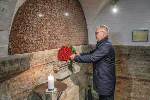 Сегодня заместитель председателя Комитета по культуре Санкт-Петербурга А. А. Александров и сотрудники Государственного музея «Исаакиевский собор» — начальник музея-памятника «Исаакиевский собор» А. А. Арютин, главный хранитель М. Ш. Доминов, хранитель экспонатов А. В. Елкин и фотограф Е. И. Мохорев – почтили память Евдокии Игнатьевны Лединкиной минутой молчания. Завершилась церемония возложением цветов к мемориальной доске.