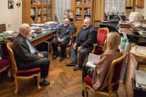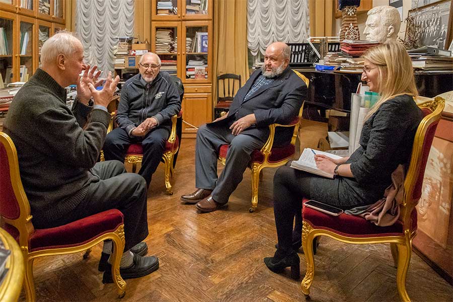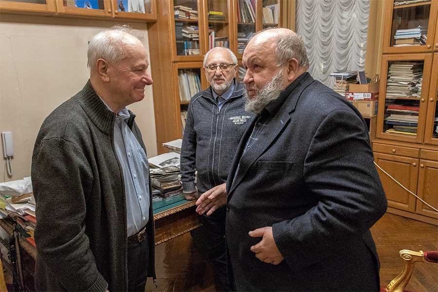На фотографиях Е. В. Гороха: Владислав Александрович Чернушенко, сербский композитор Зоран Мулич, Юрий Витальевич Мудров. 2019 год. Государственная академическая капелла Санкт-Петербурга.