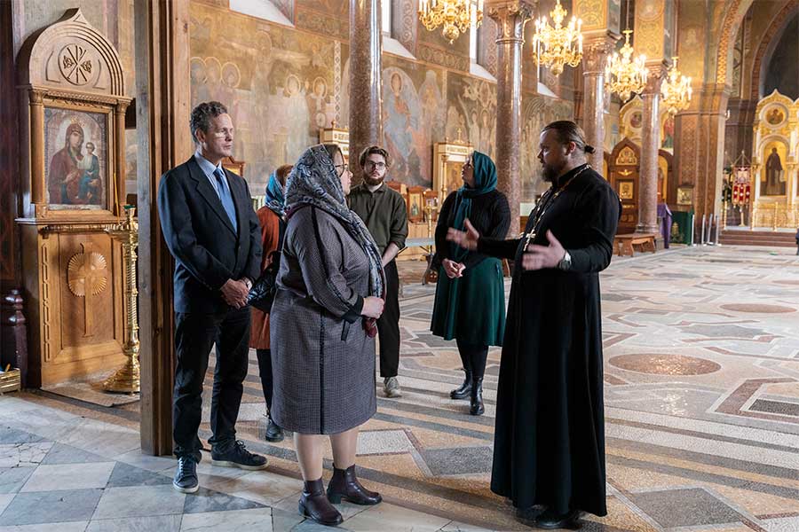 Для гостей иеромонах Филарет (Коноплев) провел экскурсию по монастырю, в ходе которой участники познакомились с историей и архитектурными особенностями обители.