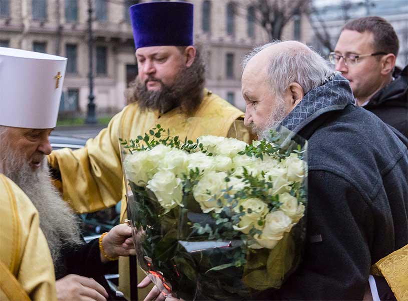 На богослужении присутствовал директор Государственного музея «Исаакиевский собор» Юрий Витальевич Мудров, которому была преподнесена икона Спаса Вседержителя, привезенная из Иерусалима. Ответным подарком стал образ преподобного Серафима Саровского.