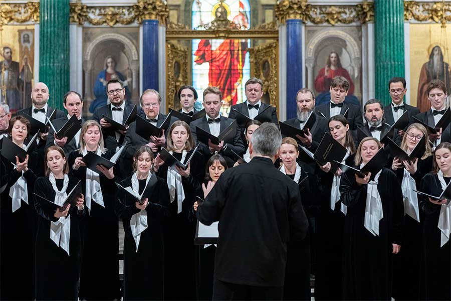 В исполнении Концертного хора Санкт-Петербурга под управлением дирижера Андрея Охлобыстина прозвучали произведения разных эпох и жанров: торжественный концерт для двух хоров Дмитрия Бортнянского «Тебе Бога хвалим», духовное песнопение Милия Балакирева «Свыше пророцы», лирические композиции Петра Чайковского и Сергея Танеева на стихи русских поэтов. Особый отклик у слушателей нашли песни военных лет «Журавли» Яна Френкеля и «Ленинградские вечера» Василия Соловьева-Седого, а также «Молитва» Юрия Фалика на стихи Лермонтова. Завершили выступление задорная «Кенгуру» Сергея Екимова на слова Николая Гумилева и «Марш веселых ребят» Исаака Дунаевского.