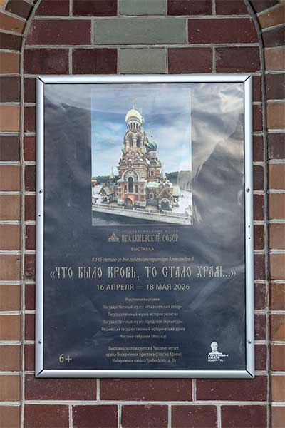 14 апреля в Часовне-музее храма Воскресения Христова состоялось открытие выставки, приуроченной к 145-летию со дня гибели императора Александра II и рассказывающей о покушении 1 марта 1881 года, а также о возведении на месте трагедии храма Воскресения Христова (Спас на Крови).