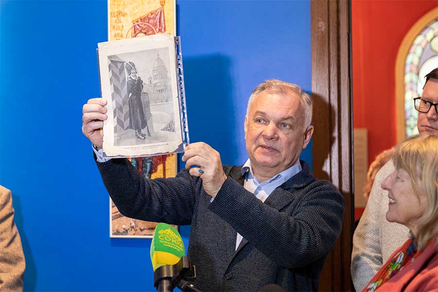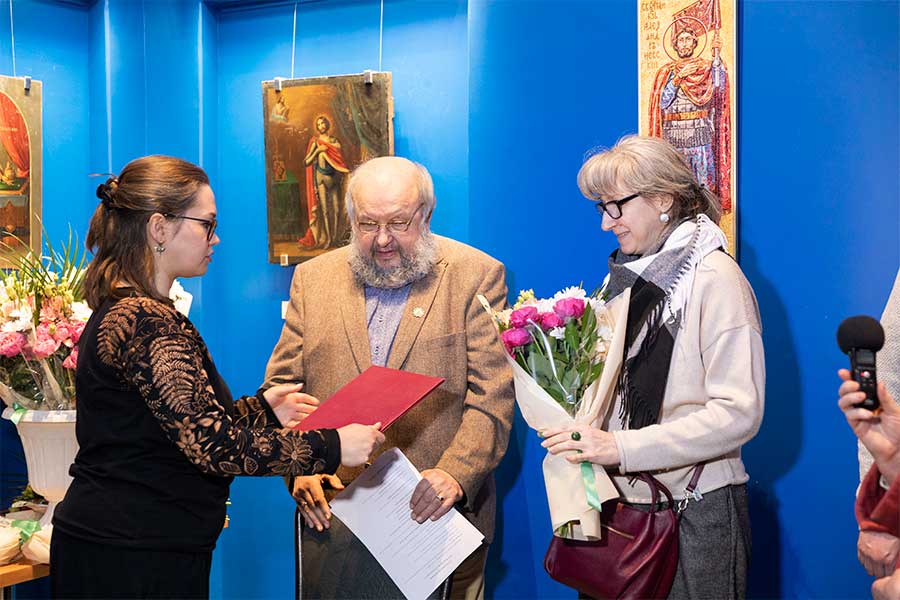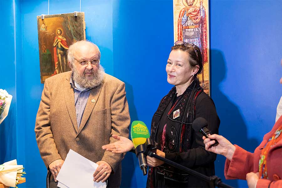 Перед собравшимися выступил музейный сотрудник из Москвы, коллекционер Александр Борисович Савинов: «Я счастлив присутствовать на открытии выставки в эти светлые праздничные дни. Поздравляю всех с этим радостным событием — гостей, сотрудников музея и директора Юрия Витальевича Мудрова».