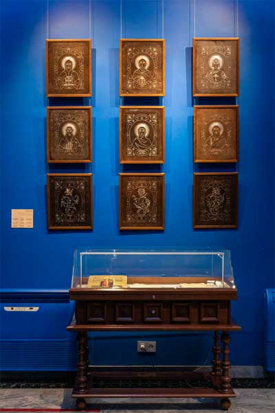 Особый раздел выставки — иконописные произведения. Здесь можно увидеть образы небесного покровителя императора святого благоверного князя Александра Невского, а также иконы Воскресения Христова — величайшего события евангельской истории, во имя которого освящен Спас на Крови.