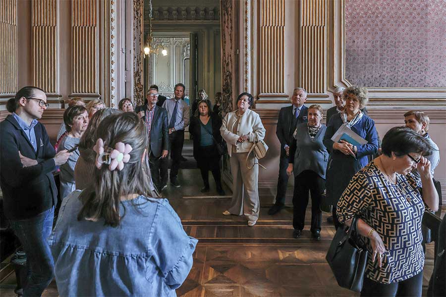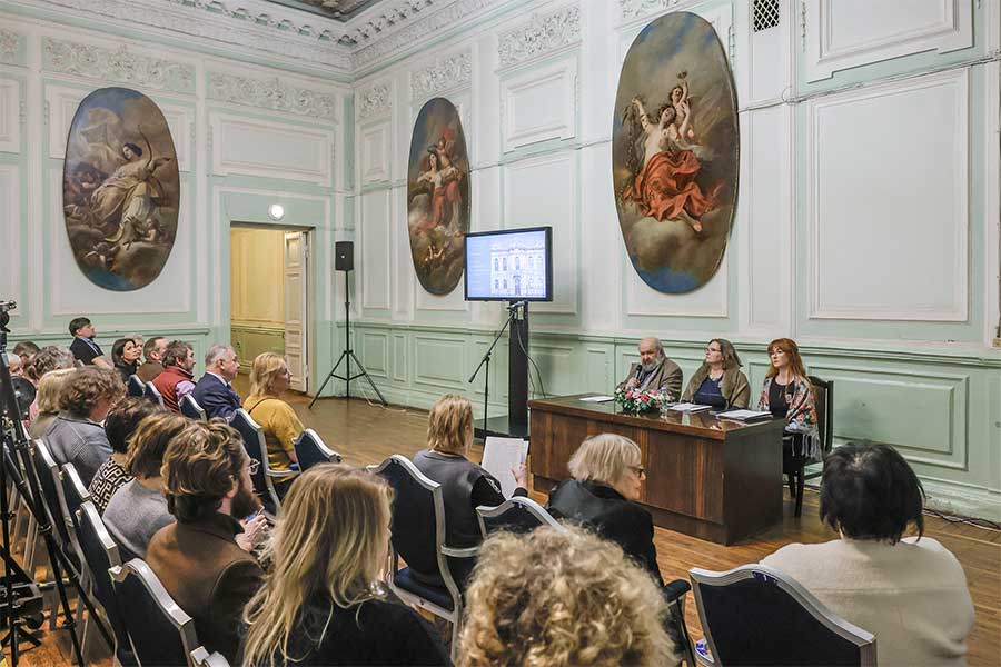 Заместитель директора по научной работе Анна Викторовна Голованова представила разработанную с учетом историко-культурной значимости дворца концепцию — документ, который является первым шагом на пути к реставрационным и ремонтным работам. Они будут проводиться в слаженной синергии с музейным проектированием, базирующимся на принципах государственной культурной политики и сочетании традиционных методик с передовыми технологиями.
