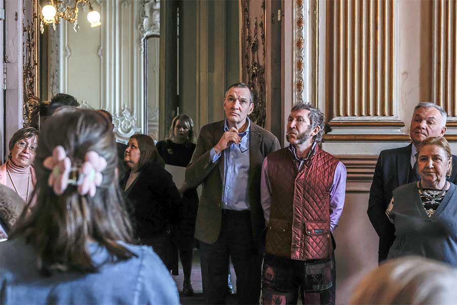 Юрий Витальевич, открывая заседание, сообщил, что музей работает в этом здании с 2023 года. Его история характеризуется многоплановостью, при этом в позднесоветский и постсоветский периоды дворец подвергался интенсивной эксплуатации. Предстоит большая работа и сегодняшнее обсуждение является первым этапом.