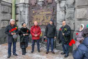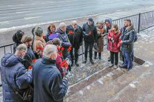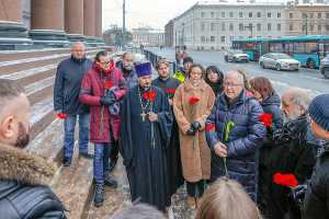 Цветы возложили к мемориальным доскам, установленным на стилобате западного портика Исаакиевского собора и на южном фасаде храм Воскресения Христова — в местах, хранящих на себе следы от снарядов, выпущенных вражеской артиллерией по Ленинграду в годы Великой Отечественной войны.