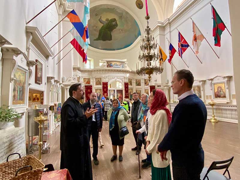 После церемонии возложения отец Даниил провел экскурсию для сотрудников музея по храму святой равноапостольной Марии Магдалины, настоятелем которого он является.