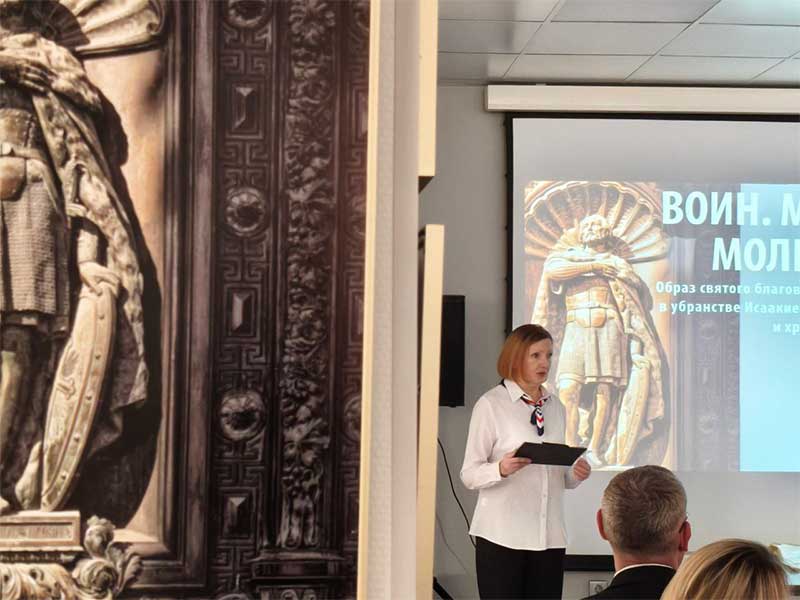 Рассказывая о проекте, она отметила, что в нем сошлось многое: и рассказ о жизни Александра Невского, и искусствоведческий анализ, и прослеживание изменений в его иконографии. Особое внимание она уделила уникальным фотографиям памятников, для создания которых фотографам приходилось использовать высотные конструкции, чтобы запечатлеть детали, невидимые с земли. В завершение Марина Евгеньевна передала книги, изданные Государственным музеем «Исаакиевский собор», в библиотеку Городского историко-краеведческого музея г. Полярного и отметила его активную работу с жителями города.