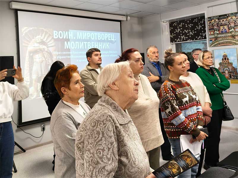 19 ноября в Городском историко-краеведческом музее г. Полярного состоялось торжественное открытие выставки «Воин. Миротворец. Молитвенник. Образ святого благоверного князя Александра Невского в убранстве Исаакиевского и Сампсониевского соборов и храма Спас на Крови».