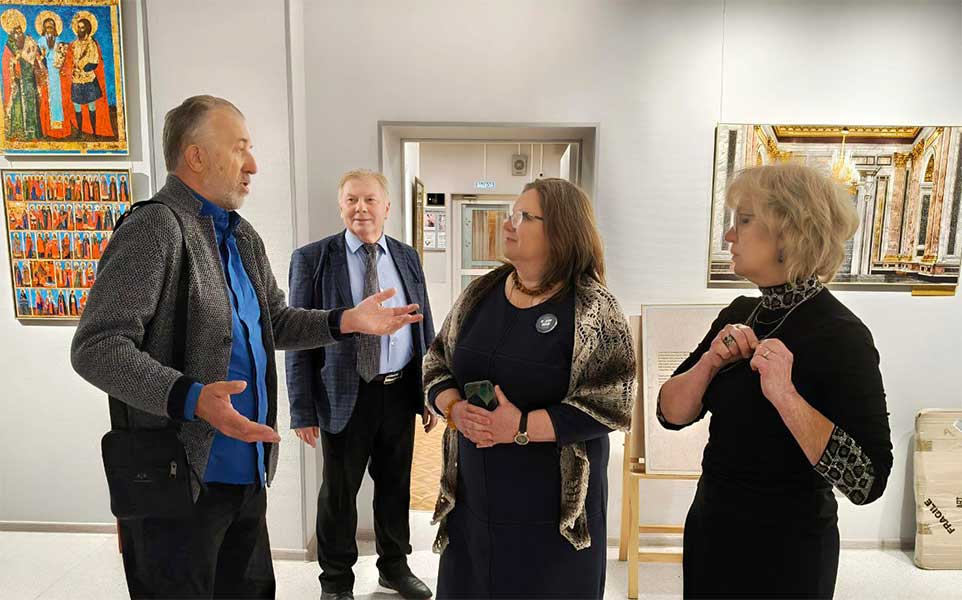 С приветственным словом от имени директора Государственного музея «Исаакиевский собор» Юрия Витальевича Мудрова выступила заместитель по экспозиционно-выставочной работе М. Е. Хайретдинова. Марина Евгеньевна выразила благодарность за помощь в организации выставки и передала приветственные письма директору Городского историко-краеведческого музея г. Полярного Валентине Николаевне Коськиной, епископу Североморскому и Умбскому Тарасию, митрополиту Мурманскому и Мончегорскому Митрофану, настоятелю храма святого Николая Чудотворца г. Полярный протоиерею Сергию Мищенко.