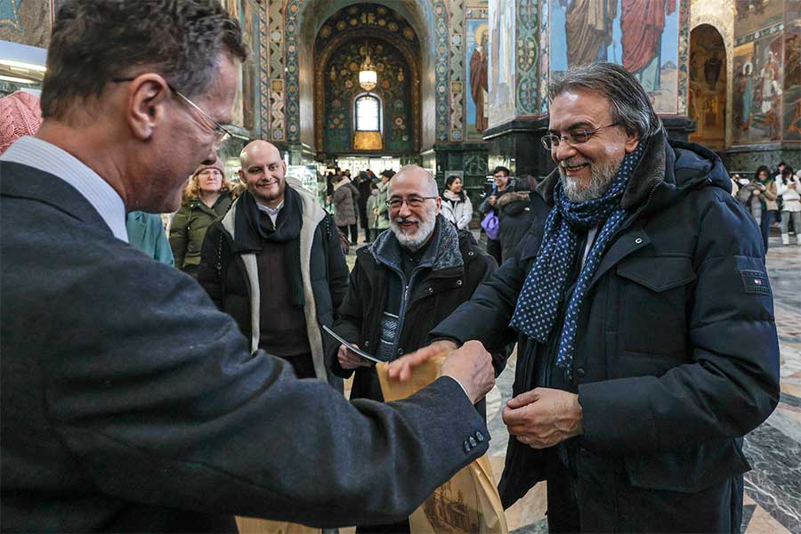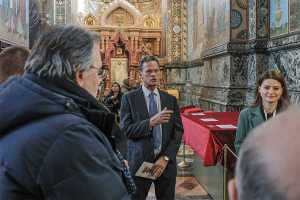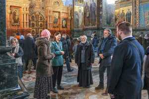 Для высоких гостей была организована подробная экскурсия по экспозиции музея, где они смогли детально ознакомиться с убранством храма-памятника. Особое внимание во время визита было уделено уникальному интерьеру храма Воскресения Христова. Гости осмотрели одну из крупнейших в Европе коллекций мозаики, полностью покрывающей стены храма, и узнали об истории его строительства на месте смертельного ранения императора Александра II, в год 145-летия трагической гибели царя-освободителя. Члены делегации поклонились памятному месту, связанному с трагическими событиями 1881 года, и ознакомились с современной жизнью собора.