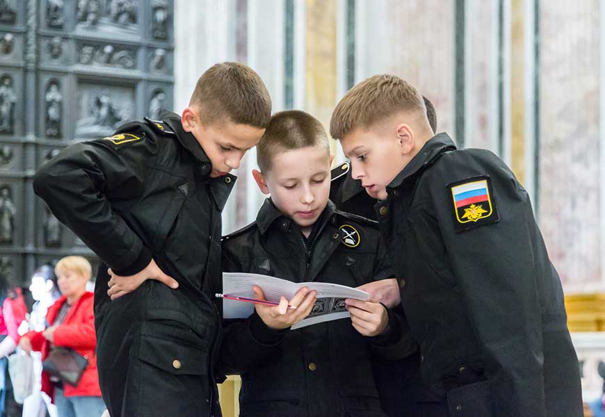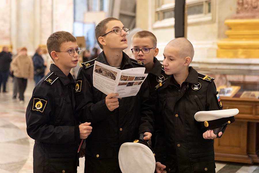 В Государственном музее «Исаакиевский собор» воспитанники седьмых классов Нахимовского военно-морского училища приняли участие в викторине «Святые защитники земли русской в убранстве Исаакиевского собора», посвященной памяти небесного покровителя Санкт-Петербурга святого благоверного князя Александра Невского.