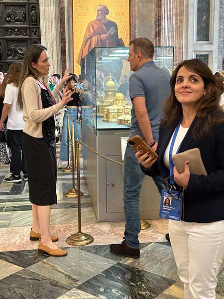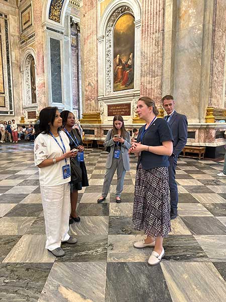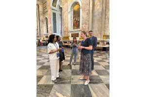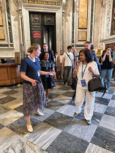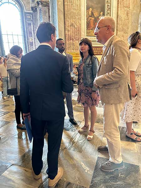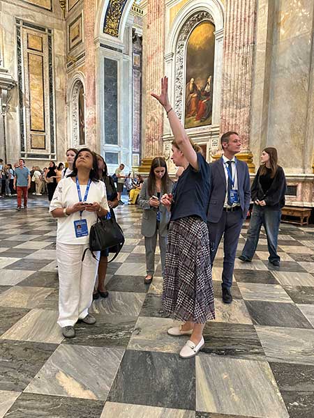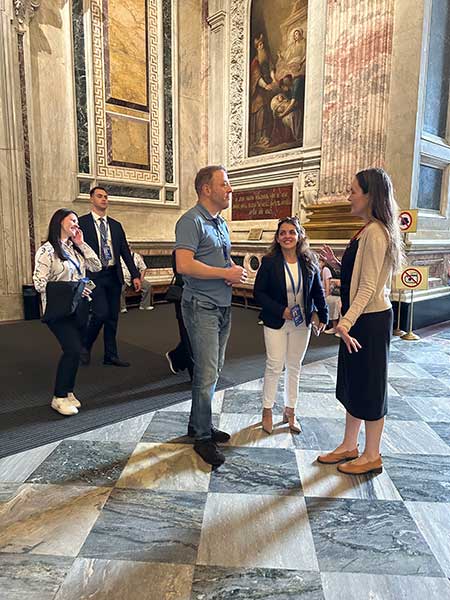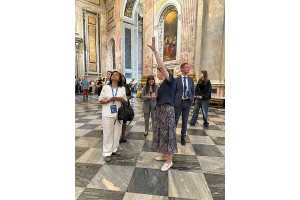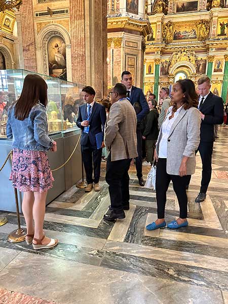 Особое впечатление на делегатов произвело посещение колоннады Исаакиевского собора. После экскурсии гости совершили подъем на обзорную площадку, откуда открывается величественная панорама исторической части Санкт-Петербурга.