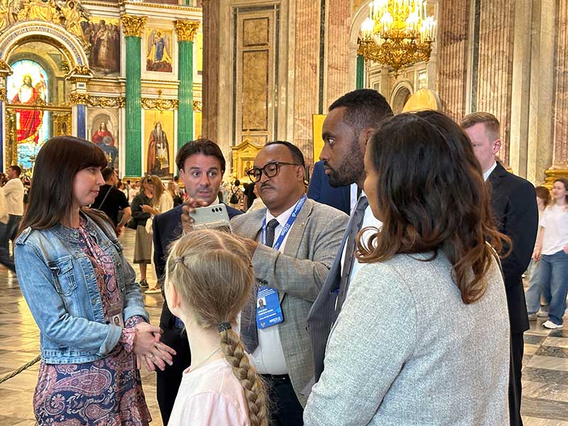В рамках участия в работе 6-й встречи руководителей прокурорских служб государств БРИКС 27 сентября музей-памятник «Исаакиевский собор» посетили делегации Генеральных прокуратур Южно-Африканской Республики, Федеративной Демократической Республики Эфиопия, Объединенных Арабских Эмиратов и Федеративной Республики Бразилия.