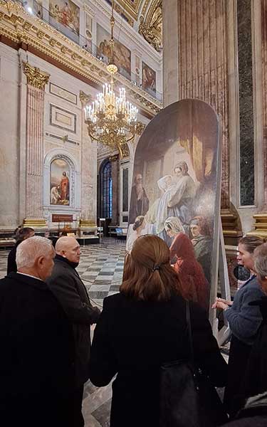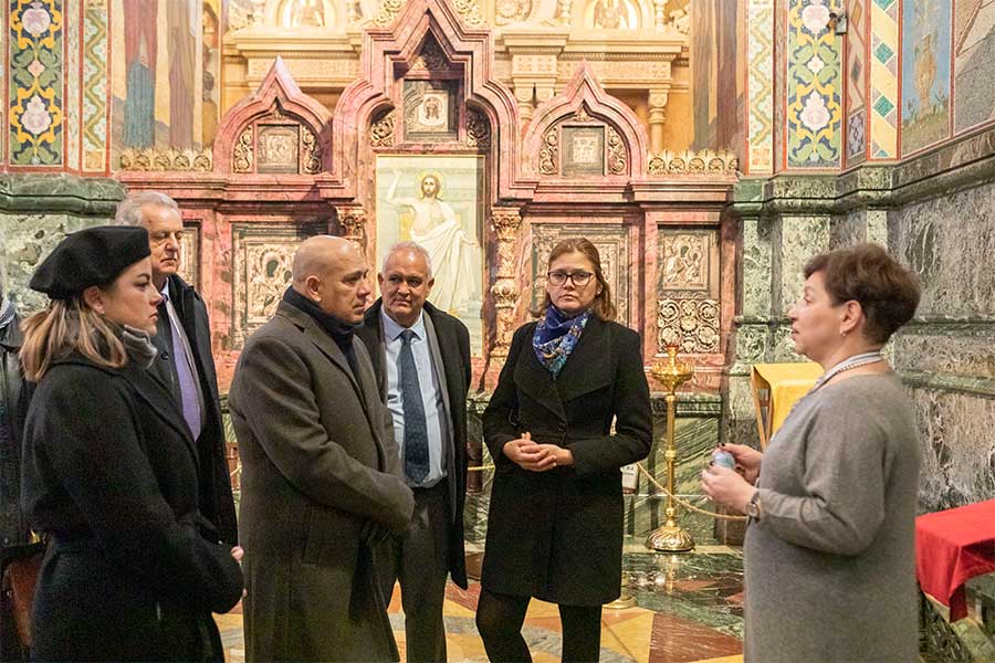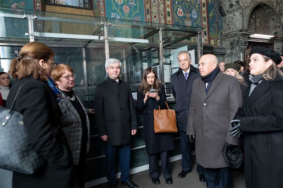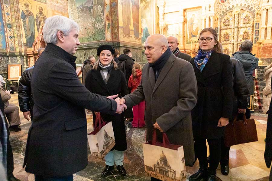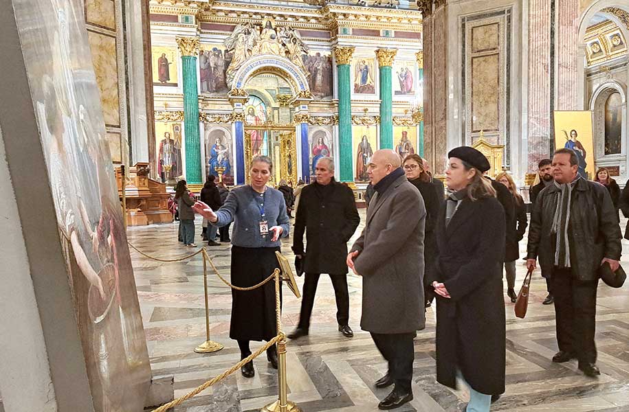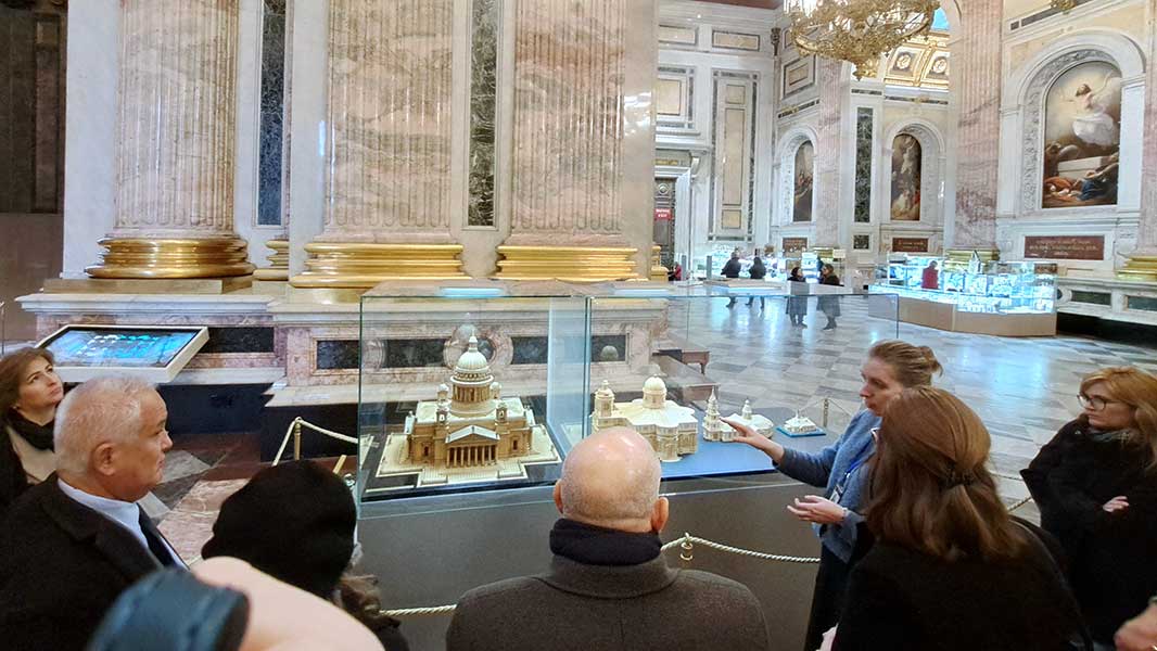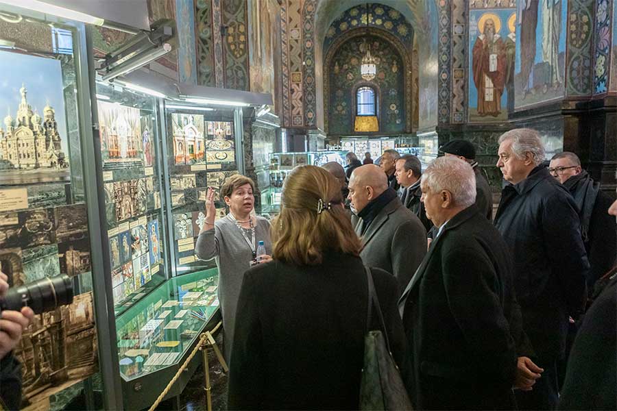 В храме «Спас на Крови» от имени директора Государственного музея «Исаакиевский собор» Юрия Витальевича Мудрова гостей приветствовала заведующая выставочным залом Часовни-музея Елена Игнатьевна Малявина. Она ознакомила делегацию с основными направлениями деятельности музея и вручила памятные подарки. В Исаакиевском соборе гостей встречал и. о. начальника музея-памятника Евгений Евгеньевич Козлов.