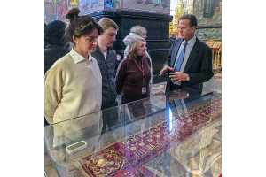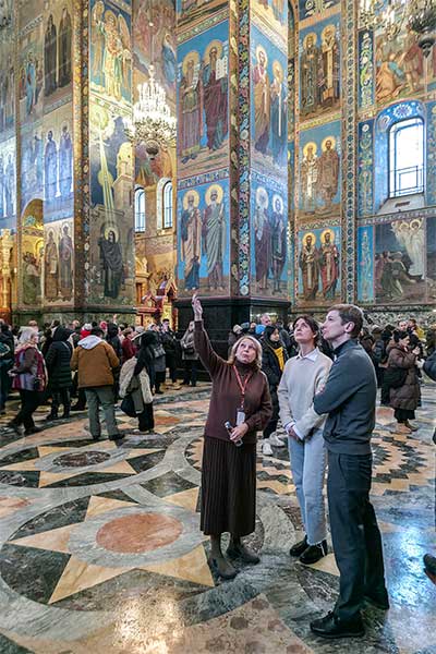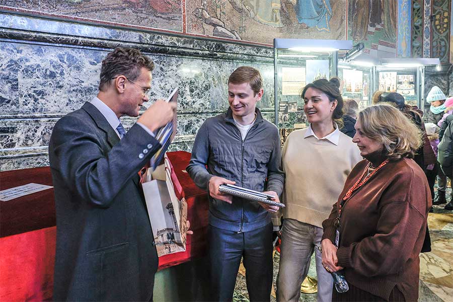 От имени директора музея Юрия Витальевича Мудрова гостей встретил начальник музеем-памятником «Спас на Крови» Илья Васильевич Демидов. Он подробно рассказал о ключевых направлениях музейной деятельности, включая научно-исследовательскую работу, реставрационные и выставочные проекты, образовательные программы, а также международное и региональное сотрудничество.