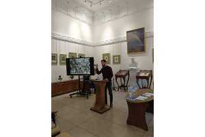 В рамках заседания с докладом выступил заведующий сектором истории реставрации Государственного музея «Исаакиевский собор» Владимир Васильевич Жуков. Его сообщение было посвящено теме «Национальная идентичность народов Российской империи в произведении А. А. Карелина «Трехсотлетие Царствования Дома Романовых».
