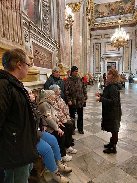 Методист сектора по работе с маломобильными посетителями С. Л. Николаева познакомила гостей выставки с историей Исаакиевского собора — храма и музея, а также рассказала о том, как создавалась мемориальная экспозиция «Чтобы помнили…». В рамках экскурсии состоялась беседа, посвященная работе сотрудников музеев в блокадном Ленинграде. Участники узнали о ежедневном подвиге хранителей, экскурсоводов и историков, которые в условиях постоянных обстрелов и бомбежек, рискуя жизнью, обеспечивали сохранность культурного наследия — уникальных экспонатов, эвакуированных сюда из музеев города и пригородных дворцов.