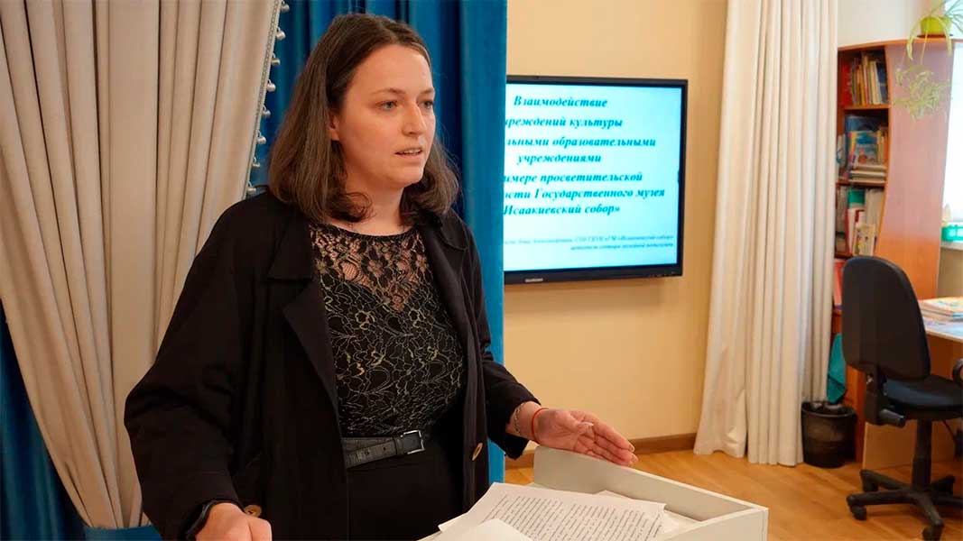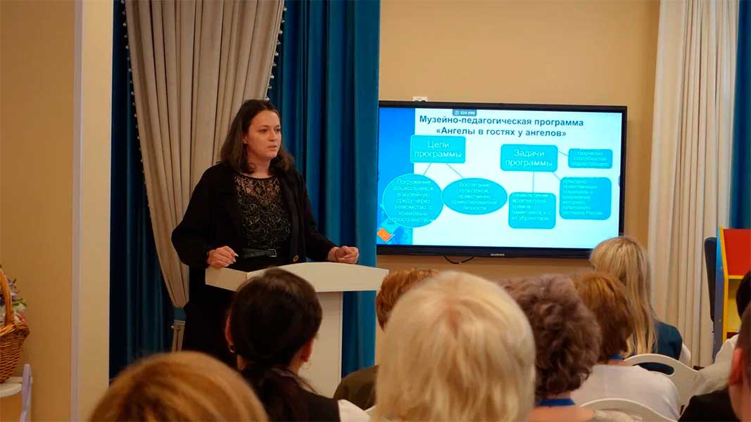 Методист Государственного музея «Исаакиевский собор» Анна Александровна Вичиньски представила музейно-педагогическую программу «Ангелы в гостях у ангелов» и осветила важные аспекты взаимодействия музея и дошкольных образовательных учреждений.