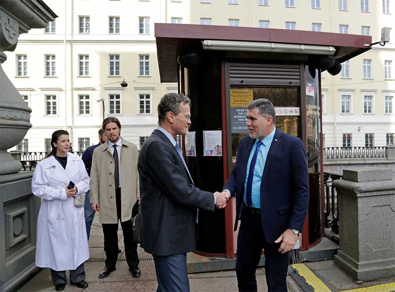 Делегацию встречали начальник музея-памятника «Исаакиевский собор» А. А. Арютин и начальник музея-памятника «Спас на Крови» И. В. Демидов. Они приветствовали гостей от имени директора Государственного музея «Исаакиевский собор» Ю. В. Мудрова. Участникам делегации были вручены сувениры в знак дружбы и на память о посещении музея.