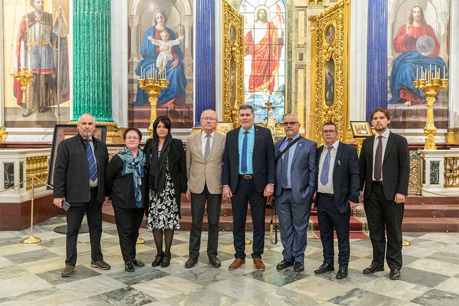 В музее-памятнике «Спас на Крови» участники делегации погрузились в историю создания храма, узнали о мемориальном значении Спаса на Крови, который был возведен на месте смертельного ранения императора Александра II. Особое впечатление на гостей произвело мозаичное убранство, являющееся одним из крупнейших собраний мозаики Европы, общей площадью более 7000 квадратных метров.