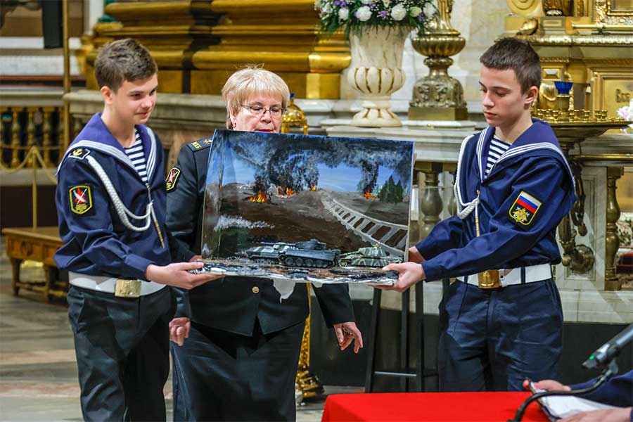 Учащиеся 8 класса Нахимовского военно-морского училища Константин Комиссаров и Богдан Сальников раскрыли тему героической борьбы советского народа с врагом, представив работу «Юнги с острова Валаам». Руководителями выступили С. В. Кулаев, старший воспитатель, начальник 4-го учебного курса, и Е. В. Филяевская, педагог-организатор 4-го учебного курса.