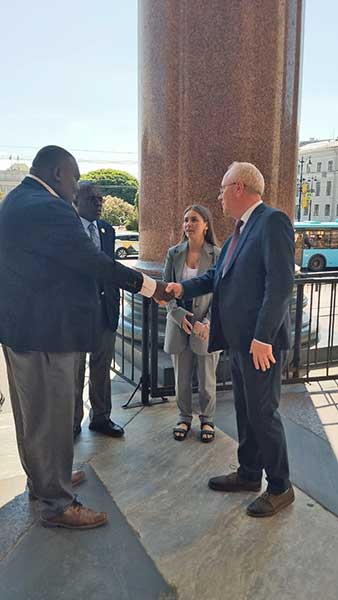 5 и 6 июня в рамках участия в ХХVII Петербургском международном экономическом форуме Государственный музей «Исаакиевский собор» посетили делегация Генеральной прокуратуры Республики Уганда и делегация Генеральной прокуратуры Объединенной Республики Танзания. Для гостей была проведена специальная экскурсия по экспозиции музея-памятника «Исаакиевский собор», в процессе которой экскурсанты познакомились с историей создания монументального сооружения, его архитектурой и художественным убранством. Участники делегации совершили подъем на колоннаду Исаакиевского собора, откуда открывается панорамный вид на исторический центр города.