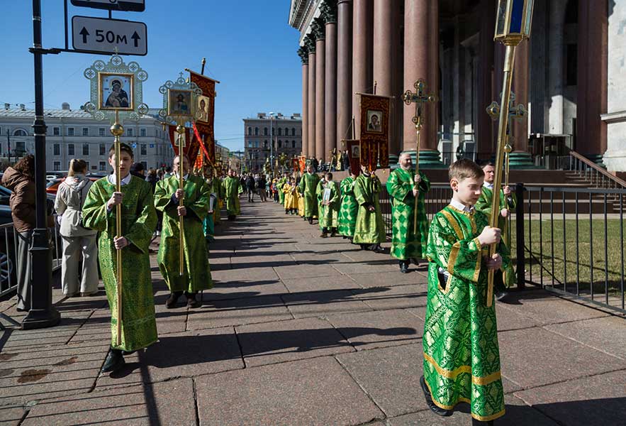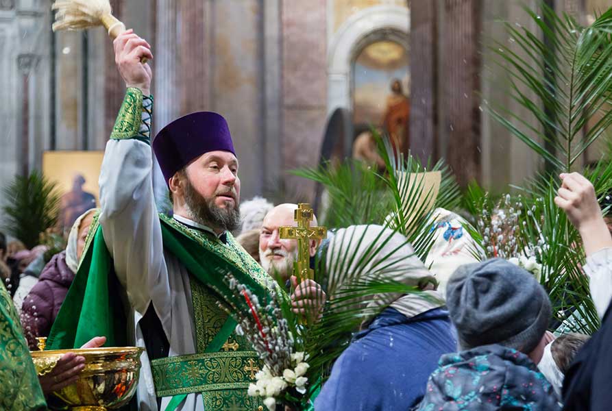 13 апреля, в праздник Входа Господня в Иерусалим (Вербное воскресенье), в Исаакиевском соборе состоялась Божественная литургия. Богослужение возглавил митрополит Санкт-Петербургский и Ладожский Варсонофий в сослужении духовенства епархии. Его высокопреосвященству сослужили епископы Кронштадтский Вениамин, Петергофский Силуан, секретарь епархиального управления протоиерей Сергий Куксевич, благочинный Адмиралтейского округа протоиерей Алексий Скляров, ключарь протоиерей Роман Ковальский с клиром, протоиерей Алексий Исаев и другие священнослужители.