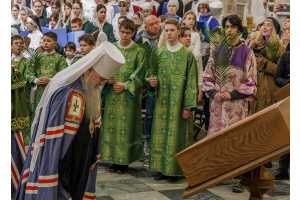 В завершение богослужения духовенство и верующие совершили крестный ход вокруг собора.