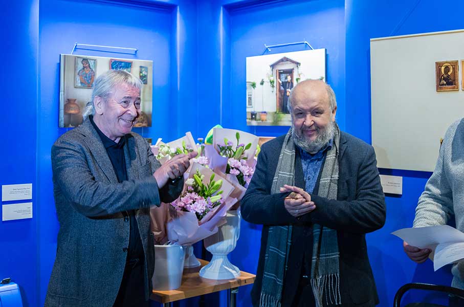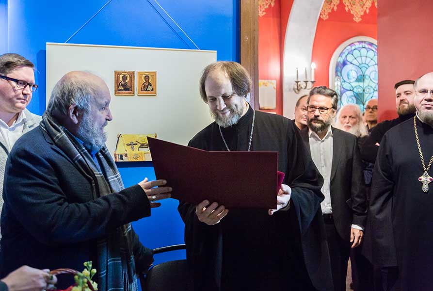 За творческий вклад и выразительное художественное свидетельство о жизни Русской православной церкви Юрий Витальевич вручил отцу Игорю благодарность и памятную медаль «Благотворитель», изготовленную Санкт-Петербургским монетным двором по заказу музея.