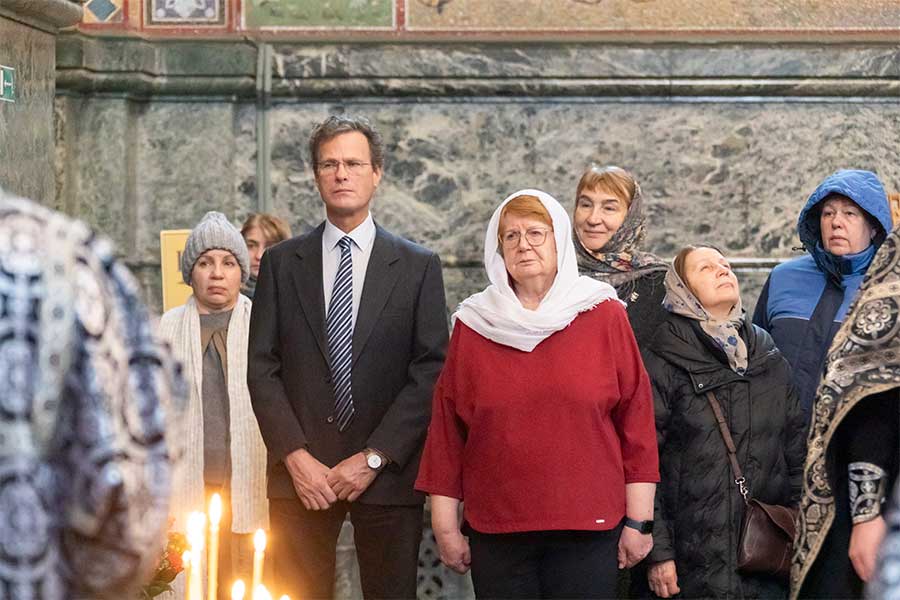 По окончании богослужения от лица директора Государственного музея «Исаакиевский собор» Ю. В. Мудрова начальник музея-памятника «Спас на Крови» И. В. Демидов возложил цветы к месту смертельного ранения императора Александра II.