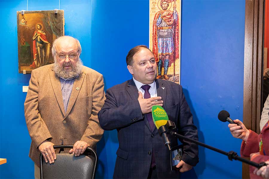 Перед собравшимися выступил музейный сотрудник из Москвы, коллекционер Александр Борисович Савинов: «Я счастлив присутствовать на открытии выставки в эти светлые праздничные дни. Поздравляю всех с этим радостным событием — гостей, сотрудников музея и директора Юрия Витальевича Мудрова».
