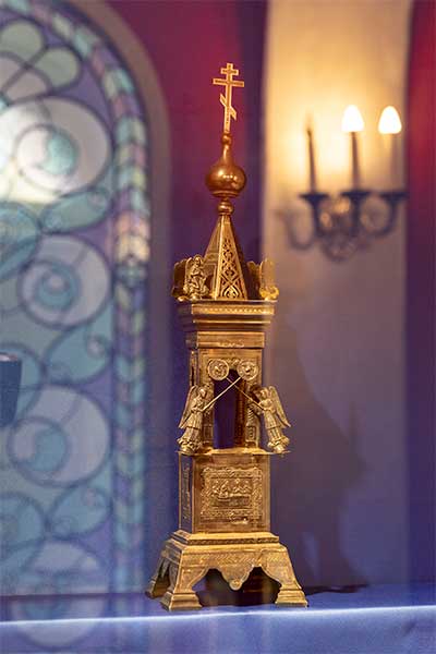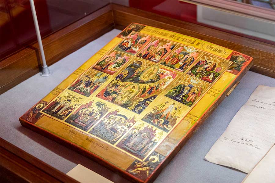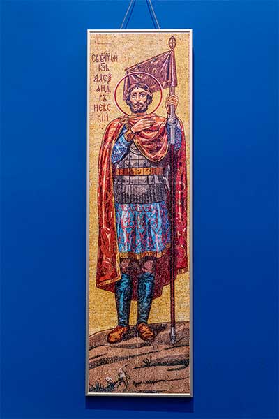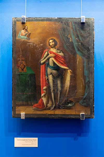 Особый раздел выставки — иконописные произведения. Здесь можно увидеть образы небесного покровителя императора святого благоверного князя Александра Невского, а также иконы Воскресения Христова — величайшего события евангельской истории, во имя которого освящен Спас на Крови.