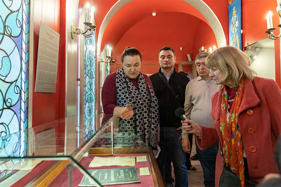 После официальной части открытия для гостей и участников выставки сотрудник Государственного музея «Исаакиевский собор» методист Мария Борисовна Сычева провела экскурсию по экспозиции.