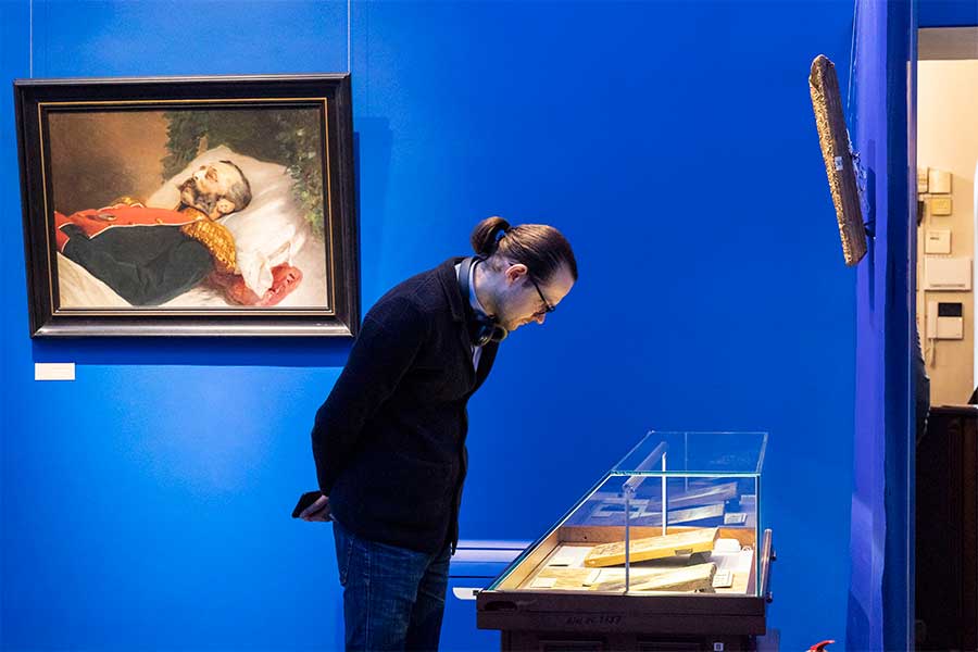 В экспозиции представлен посмертный образ Александра II, написанный художником К. Е. Маковским всего через несколько часов после трагедии, печатный экземпляр одного из вариантов траурного марша, сочиненного в первые дни после этих событий, и публикации в журнале «Нива», также имеющие мемориальное значение.