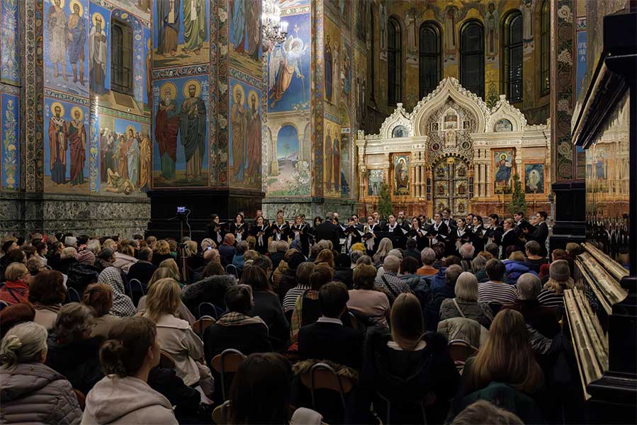 Государственный музей «Исаакиевский собор» много лет отмечает общедоступными концертами памятные даты, связанные с героическими событиями Великой Отечественной войны. В этом году, впервые с начала проведений подобных концертов, мероприятие состоялось в музее-памятнике «Спас на Крови». Концертный хор Санкт-Петербурга и его художественный руководитель, заслуженный артист России Владимир Беглецов, подготовили оригинальную программу, которая началась с «Песни о Земле» Владимира Высоцкого. Далее прозвучал хоровой цикл «Во дни брани» Павла Чеснокова. Написанные в 1915 году шесть хоров на канонические церковные тексты из молитвослова и церковных богослужений объединены общей тематикой. Это молитвенное прошение, обращенное ко Христу и Богородице, о заступлении от врагов, от болезни и голода и о помощи в борьбе с противником. Лирический хоровой цикл «Ленинградская тетрадь» Александра Флярковского был создан на стихи ленинградских поэтов, которые были современниками и даже участниками тех героических событий. Программу продолжила одна из самых пронзительных песен о войне — «Журавли» Яна Френкеля на стихи Расула Гамзатова в переводе Наума Гребнева. Весь зал встал поз звуки песни Александры Пахмутовой на слова Михаила Львова «Поклонимся великим тем годам». На бис прозвучала «Вечерняя песня» Василия Соловьева-Седого, неофициальный гимн нашего великого Города.