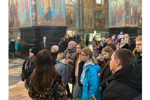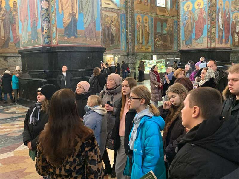 Юные гости посетили музей-памятник «Спас на Крови», где познакомились с историей строительства этого уникального объекта. Экскурсоводы рассказали детям о событиях, связанных с храмом-памятником, возведенным на месте смертельного ранения императора Александра II. Особое внимание было уделено архитектурным особенностям и декоративно-художественному убранству собора.