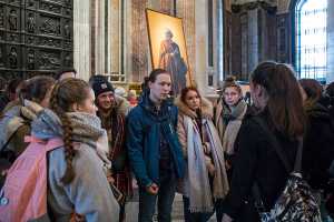 11 апреля учащиеся школы № 72 Калининского района Санкт-Петербурга с углублённым изучением немецкого языка провели экскурсию в музее-памятнике «Исаакиевский собор» на немецком языке для школьников из Гамбурга, а также посетили колоннаду. В течение 2018/19 учебного года ученики прослушали курс занятий по абонементу «Под сводами Исаакиевского собора».