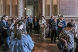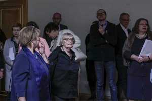 На заседании также присутствовали руководитель Музейно-библиотечного просветительского центра Аппарата Законодательного Собрания Санкт-Петербурга — главный хранитель Мариинского дворца М. В. Шапошникова, главный хранитель Юсуповского дворца на Мойке Н. Б. Вахания, декан факультета теории и истории искусств Санкт-Петербургского государственного академического института живописи, скульптуры и архитектуры имени Ильи Репина С. М. Грачева, коллекционеры С. А. Подстаницкий и А. В. Руденцов, технический директор ООО «Возрождение Петербурга» П. Г. Щедрин.