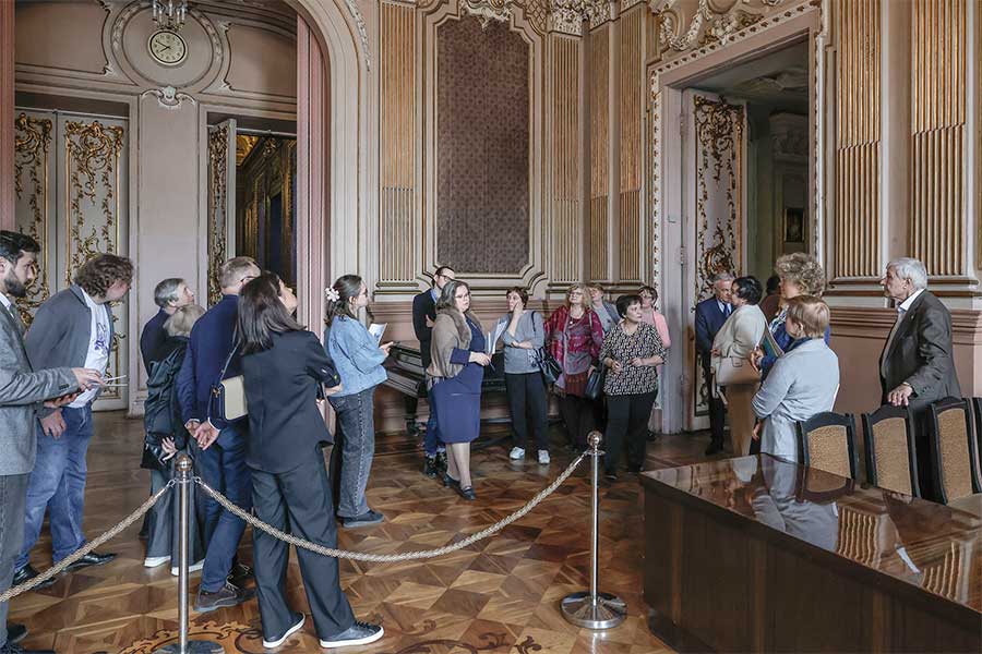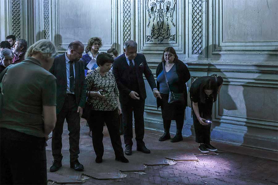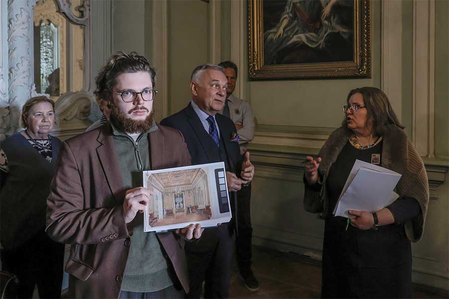 Заместитель директора по научной работе Анна Викторовна Голованова представила разработанную с учетом историко-культурной значимости дворца концепцию — документ, который является первым шагом на пути к реставрационным и ремонтным работам. Они будут проводиться в слаженной синергии с музейным проектированием, базирующимся на принципах государственной культурной политики и сочетании традиционных методик с передовыми технологиями.