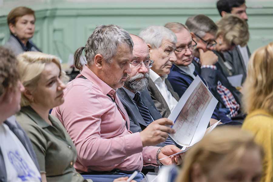 Юрий Витальевич, открывая заседание, сообщил, что музей работает в этом здании с 2023 года. Его история характеризуется многоплановостью, при этом в позднесоветский и постсоветский периоды дворец подвергался интенсивной эксплуатации. Предстоит большая работа и сегодняшнее обсуждение является первым этапом.