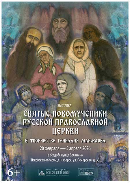 20 марта в Усадьбе купца Белянина Государственного музея-заповедника «Изборск» (Псковская область) начнет работу выставка «Святые новомученики Русской православной церкви в творчестве Геннадия Манжаева». Экспозицию составят тридцать произведений автора из собрания Государственного музея «Исаакиевский собор».