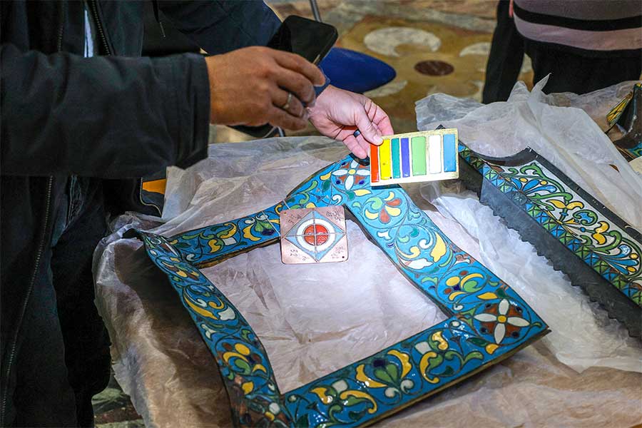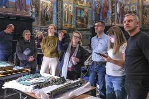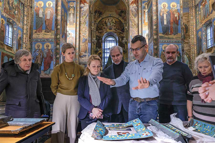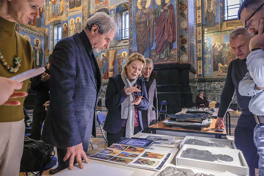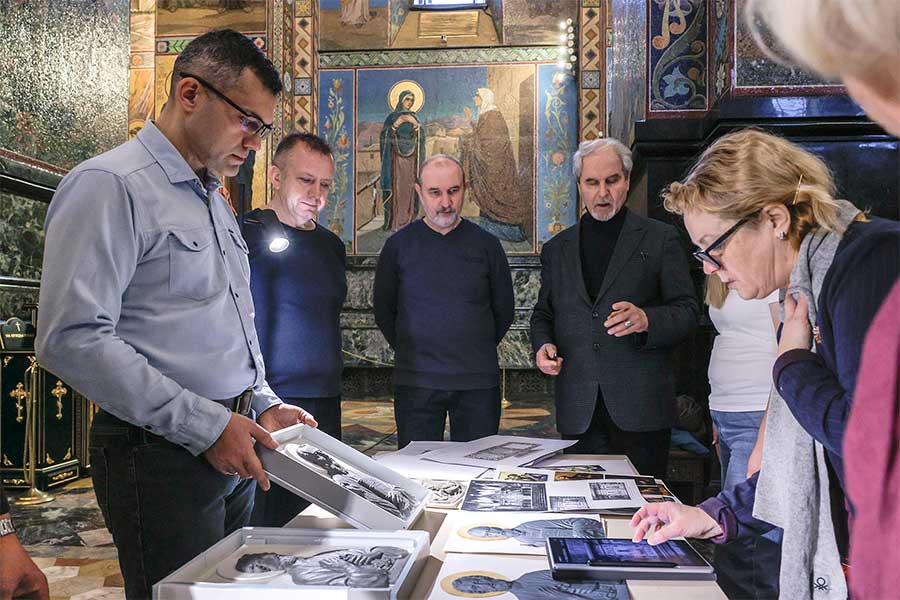 Основная тема встречи – работы по воссозданию складней алтарной преграды главного иконостаса. По итогам были определены и согласованы ключевые художественные решения: цветовая гамма эмалей, изображения ликов святых. Мероприятие явилось важным этапом комплексного научного подхода к восстановлению уникального памятника.