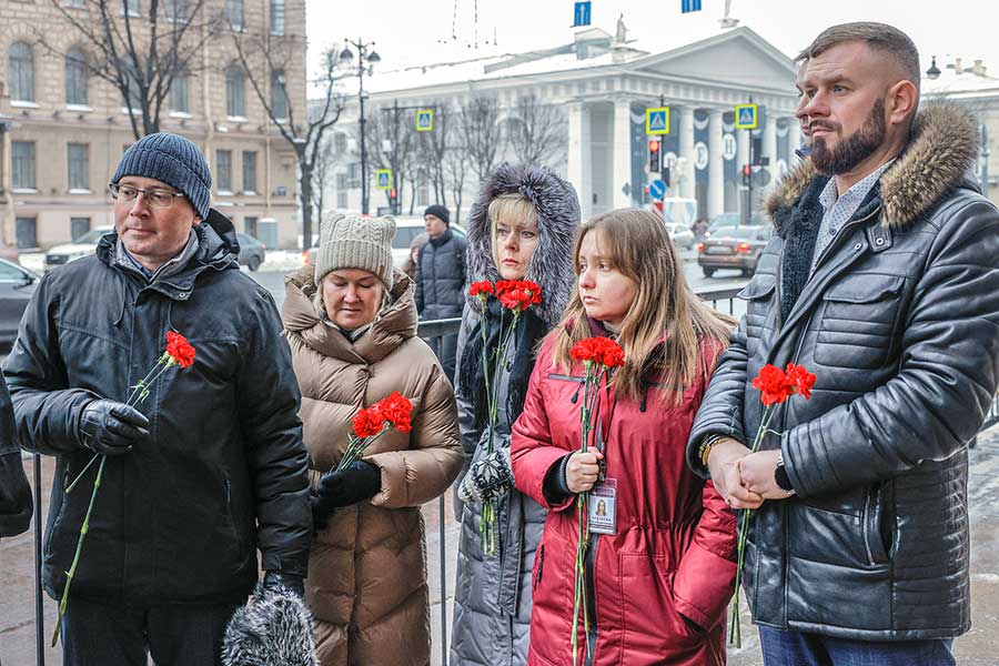 Цветы возложили к мемориальным доскам, установленным на стилобате западного портика Исаакиевского собора и на южном фасаде храм Воскресения Христова — в местах, хранящих на себе следы от снарядов, выпущенных вражеской артиллерией по Ленинграду в годы Великой Отечественной войны.