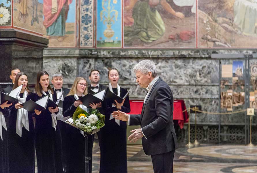 18 февраля в музее-памятнике «Спас на Крови» Концертный хор Санкт-Петербурга под управлением заслуженного артиста России Владимира Беглецова представил программу из произведений австрийской и русской музыки XIX века. Прозвучали шесть духовных хоров Антона Брукнера (1824–1896), четыре фрагмента из цикла «Двенадцать хоров на слова Якова Полонского» Сергея Танеева (1856–1915) и «Шесть духовных песен на стихи Йозефа Эйхендорфа» Гуго Вольфа (1860–1903).