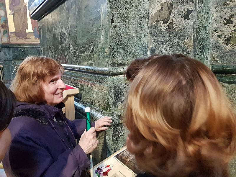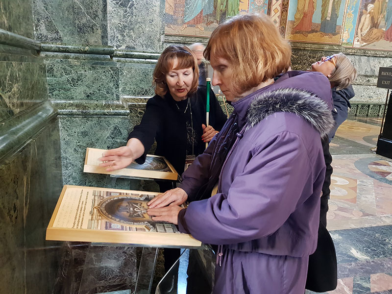 15 марта гостями музея-памятника «Спас на крови» стали представитель Библиотеки Конгресса США госпожа Карен Кенингер с супругом Брайаном Кенингером и представитель Общества слепых Австралии госпожа Антеа Тейлор. Сотрудники сектора по работе с маломобильными посетителями познакомили уважаемых слушателей со специализированным экскурсионным маршрутом «Увидеть невидимое» для слепых и слабовидящих посетителей, который действует с марта 2018 года и позволяет сделать пребывание в музее людей с ограничением по зрению информативным, интересным и познавательным.