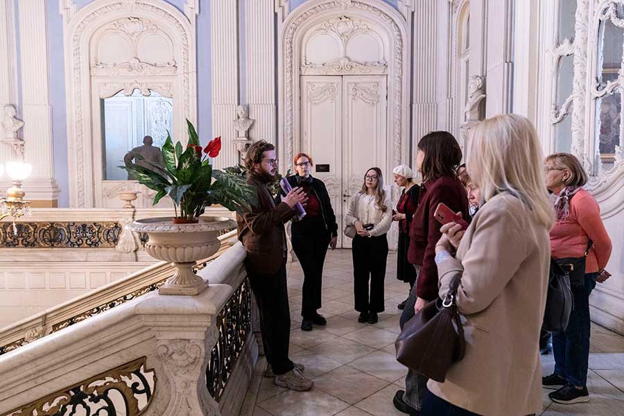 18 апреля для гостей выступили заведующий научно-просветительским сектором «Юсуповский дворец на Литейном» Д. А. Кашкарев и методист А. В. Половинкина. Они провели для участников форума обзорную экскурсию по парадным залам и интерьерам дворца, познакомив их с историей этого уникального архитектурного памятника и его владельцев.